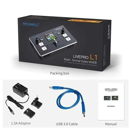 Feelworld livepro L1 có đầy đủ tính năng, cũng như một bàn trộn chuyên nghiệp. Có các hiệu ứng trồng ảnh, ghép ảnh, mode chuyển…. Có menu setup khá trực quan dễ hiểu, và sử dụng màn hình trên phần cứng. Giúp chúng ta tối ưu được rất nhiều chi phí khi livestream. Vì L1 sử dụng trên ngay phần cứng, nên không đòi hỏi một máy tính có cấu hình mạnh để làm đều đó.