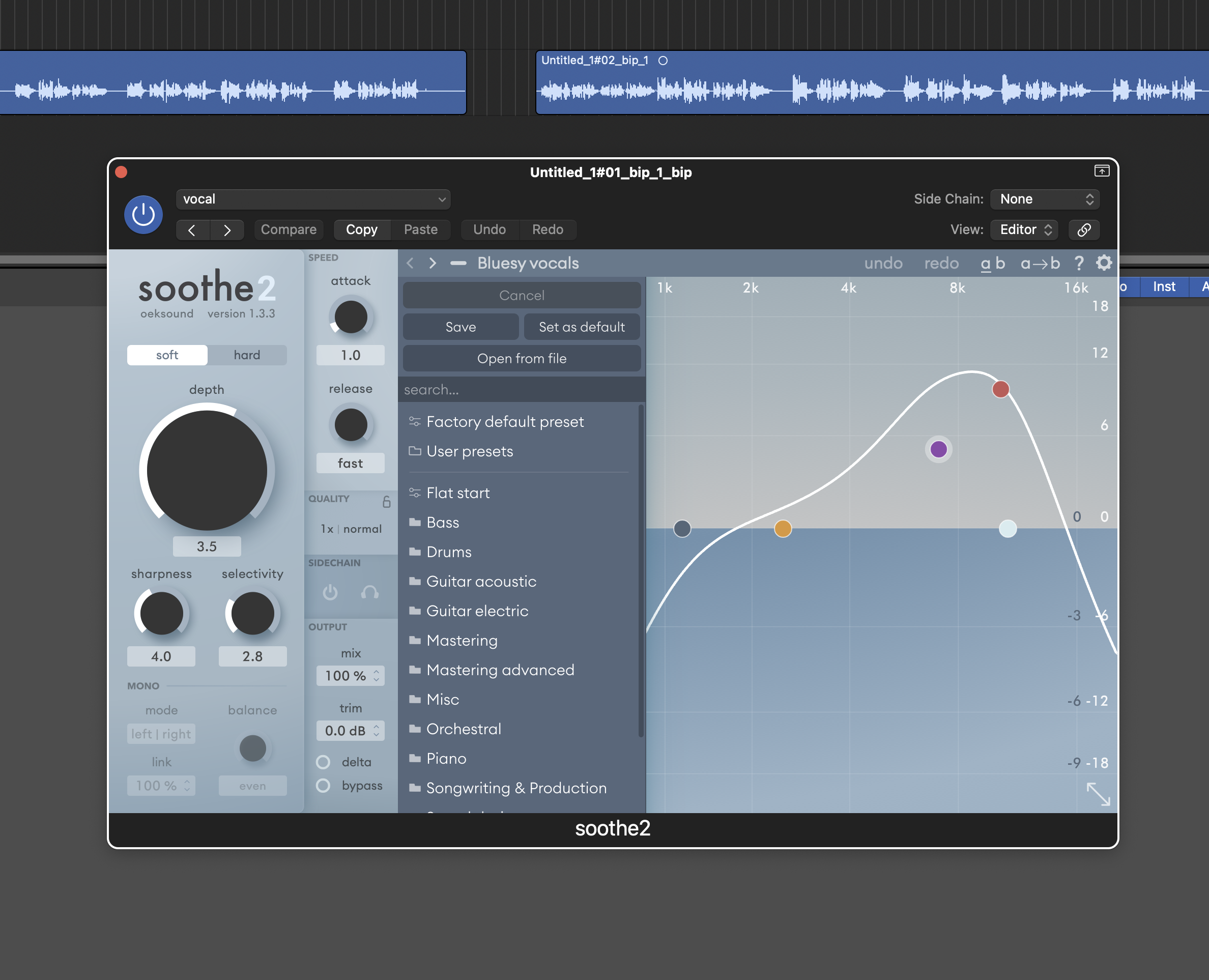 Khác với EQ thông thường, Soothe2 tự động phát hiện và giảm những dải tần gây chói, gắt, rít — nhưng vẫn giữ lại độ tự nhiên của âm thanh.